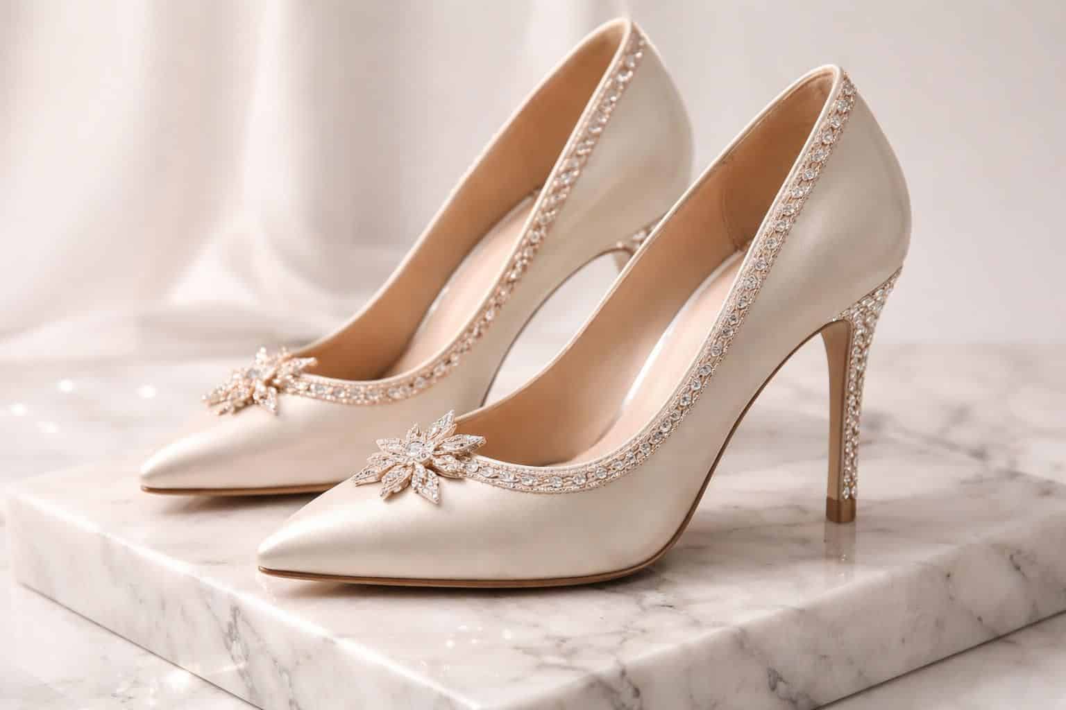 - Ornements raffinés : Certaines chaussures sont ornées de détails en Swarovski, rappelant les créations joaillières où chaque pièce est soigneusement travaillée.