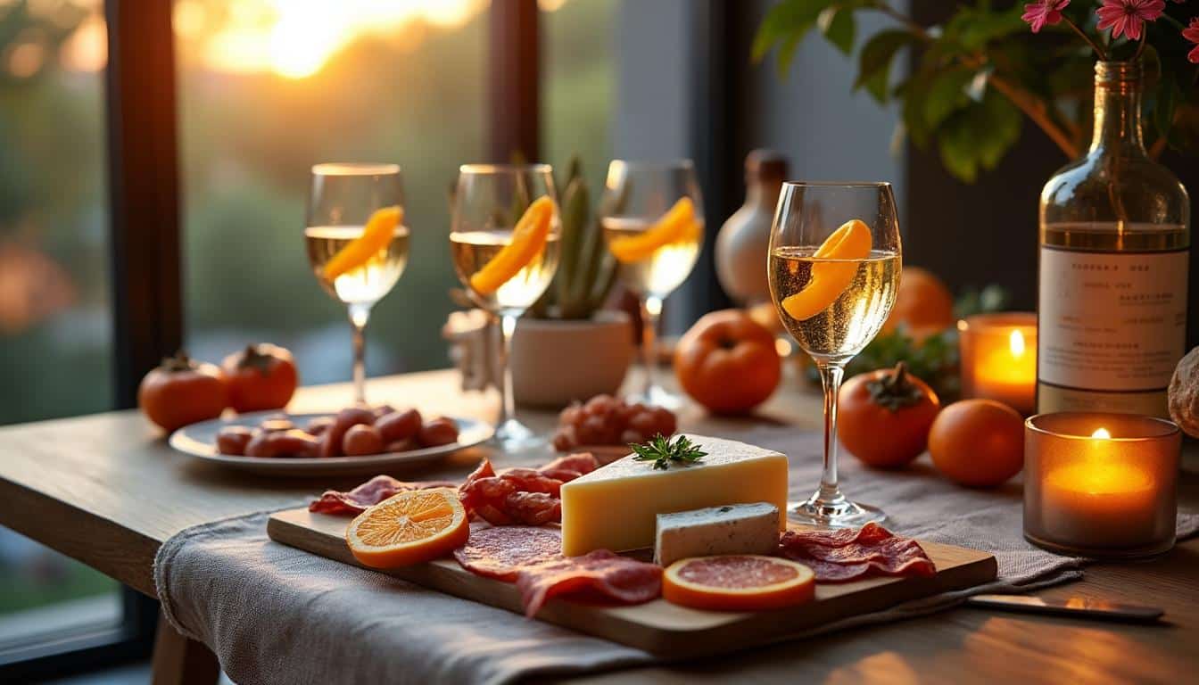 Proposer des cocktails maisons durant l’apéro apporte une touche de magie. Un Spritz vénitien, traditionnel mais revisité avec des fruits frais, ajoute du peps à l’événement. Pour ceux qui préfèrent les bières, une Chouffe belge, avec ses notes fruitées, accompagnera parfaitement les fromages typés.
